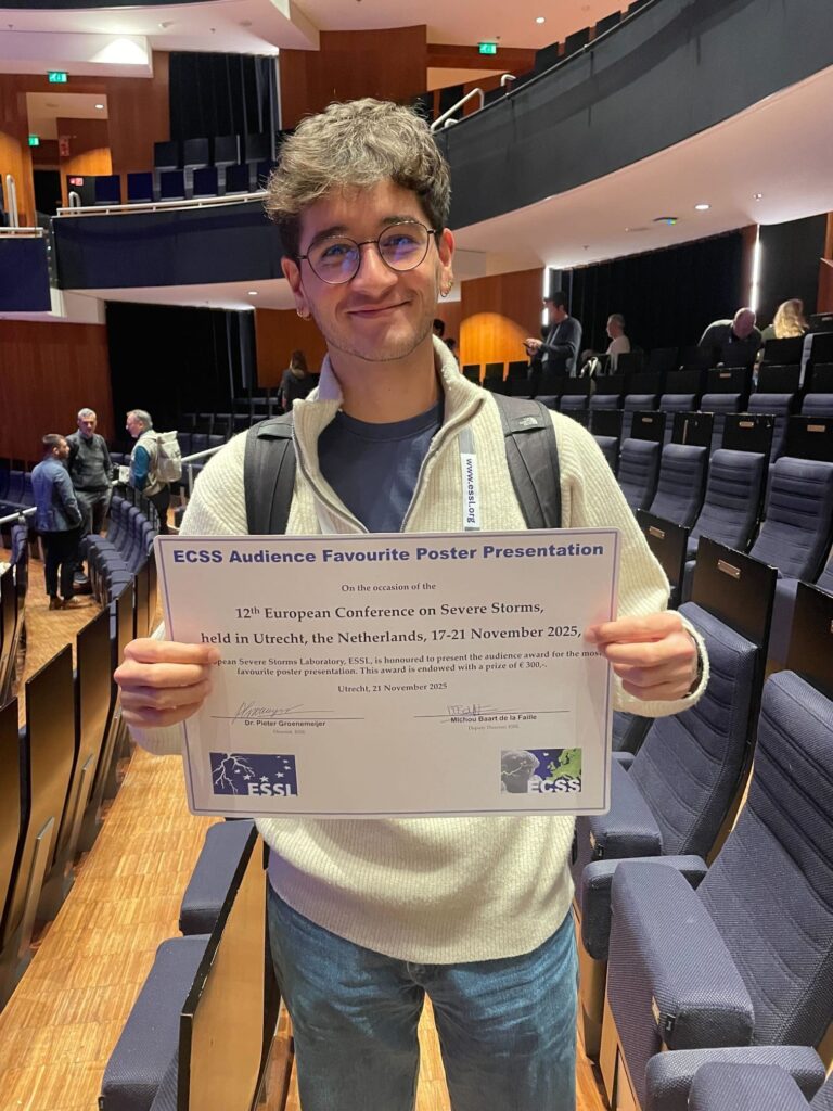 Adrien Burq, doctorant au sein du projet PowDev du PEPR TASE, a reçu le prix du public du meilleur poster scientifique, lors d’ECSS 2025, la 12ème édition de la Conférence européenne sur les tempêtes sévères.